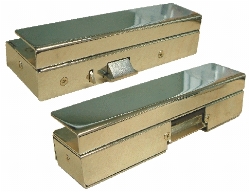 陽極鎖下支架 型號:EL-BR100C 適用門式:無框之厚玻璃門 (9mm~12mm) 外型尺寸:90×27×40(mm) 重量:300g